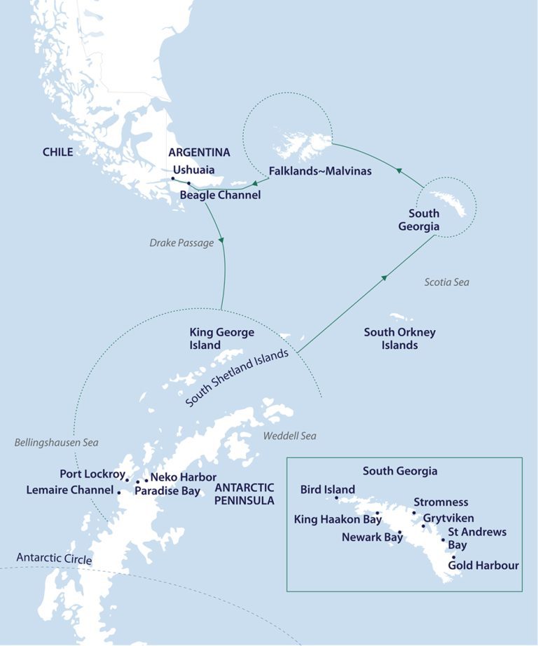 Home » Antarctica » Antarctica Ships » Greg Mortimer » Falklands, South Georgia & Antarctic Peninsula