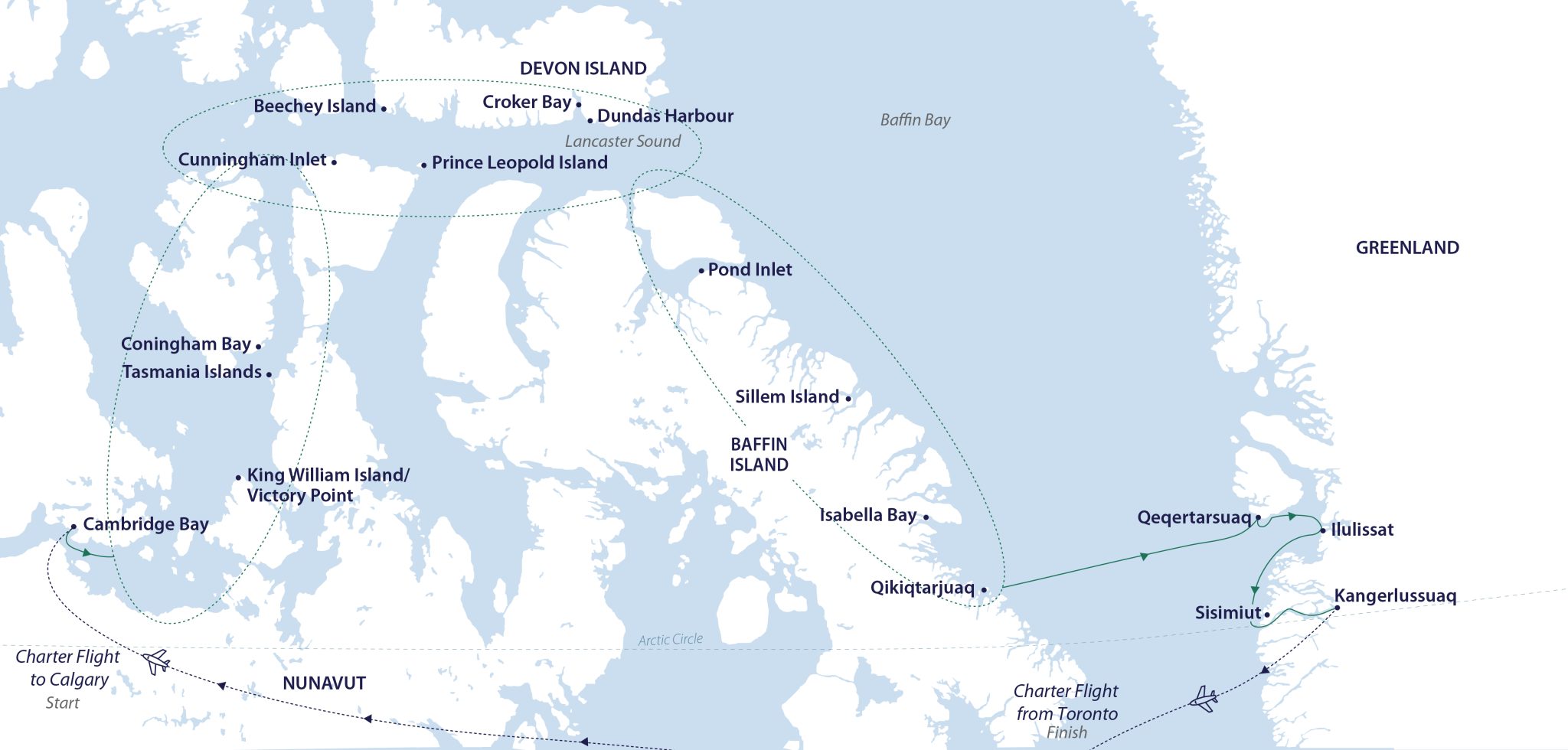 - Charter flight from Kangerlussuaq to Toronto on Day 16.