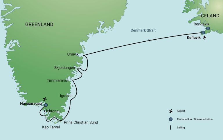 - Transfers and baggage handling between the airport in Narsarsuaq and the ship for those passengers on the flight from Copenhagen.